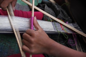Backstrap loom weaving in process, Nagaland