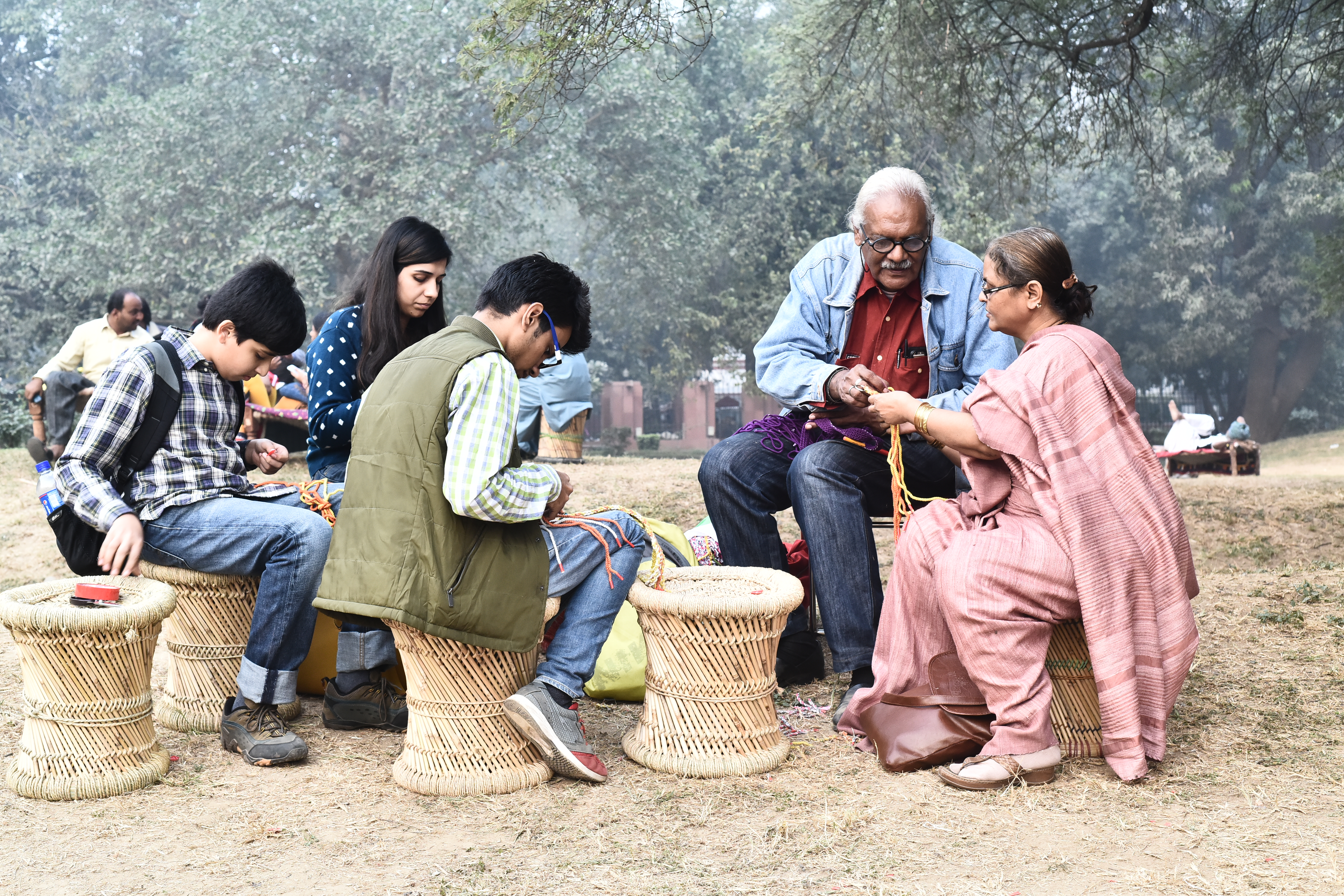 (Erroll Pires Nelson conducting a ply split braiding workshop at the Living Lightly exhibition in New Delhi)