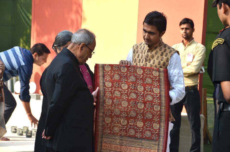 (Khatri showing a Bagh printed piece to President Pranab Mukherjee)