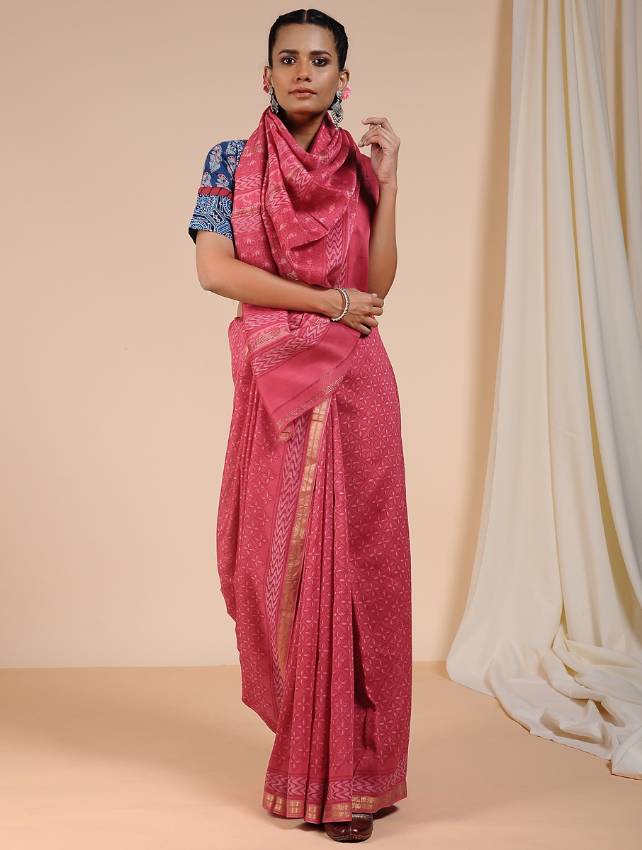 Delight in the heritage of block-printing, captured vividly on a canvas of buttery soft Chanderi.