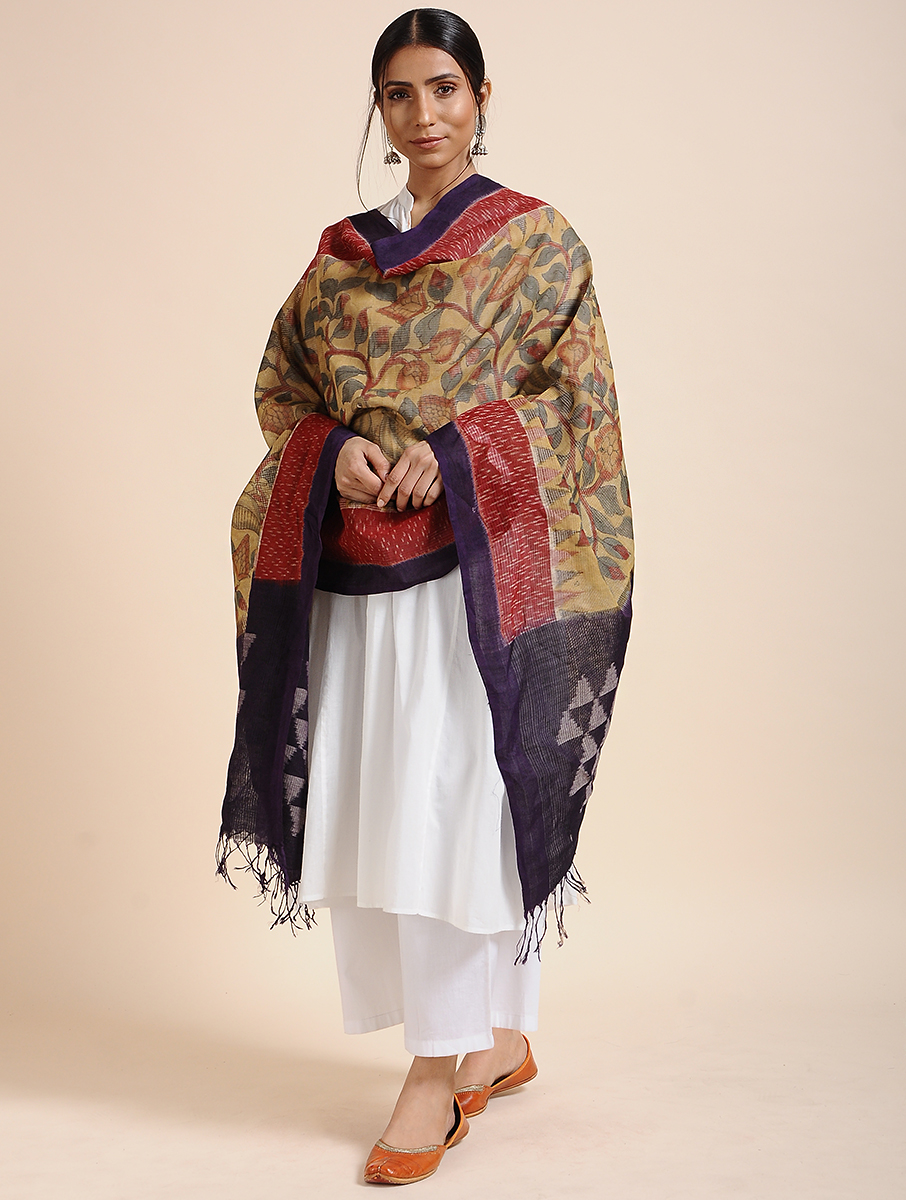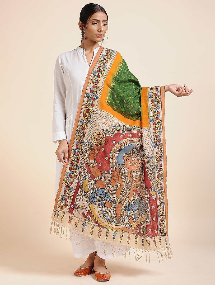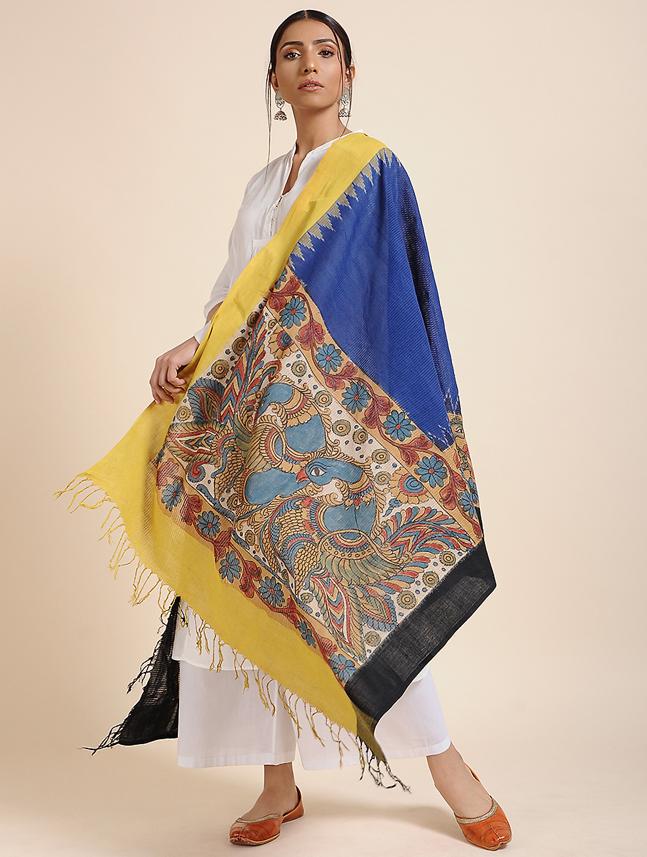 With a vibrant narrative translated onto a neutral canvas, a beautiful craft comes alive in Jaypore’s newest capsule of stunning Kalamkari dupattas.