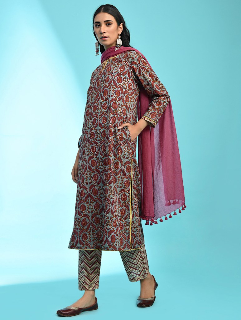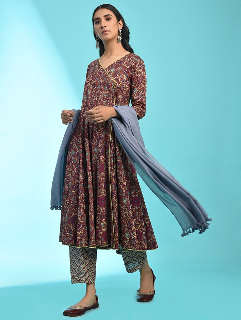 Made with hand-carved wood blocks in deep earthy hues perfect for the season, these kurtas come in straight cuts and floaty silhouettes.