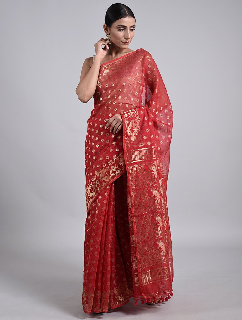 It’s that time of the year again when pujo is just around the corner and the excitement is palpable- pandal visiting, carefree lunches with family and friends and all the rituals we love- prepare for this happy time with Jaypore’s brand new edit of Dhakai jamdanis, opulent Balucharis, muslin sarees and more.