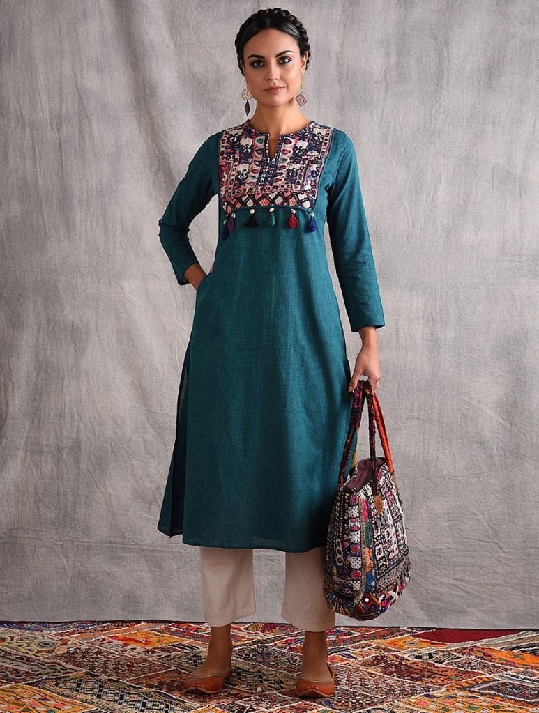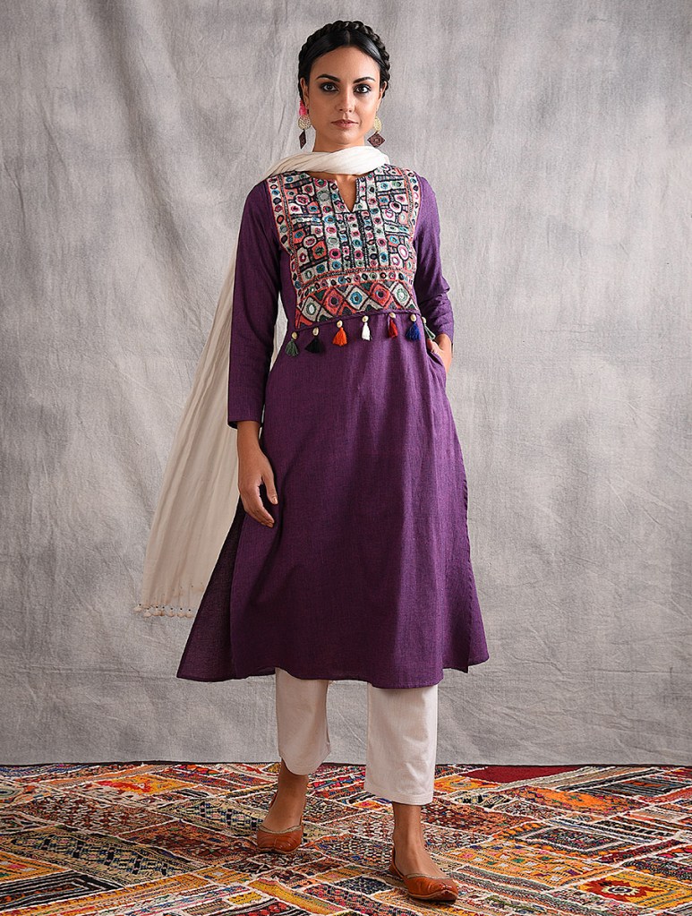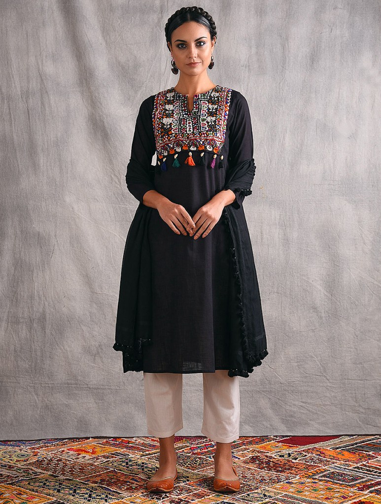 Jaypore’s freshest capsule of kurtas with embroidered vintage yokes and tassels, on a canvas of moody solids, borrows inspiration from the nomadic tribes of Kutch, and beyond.
