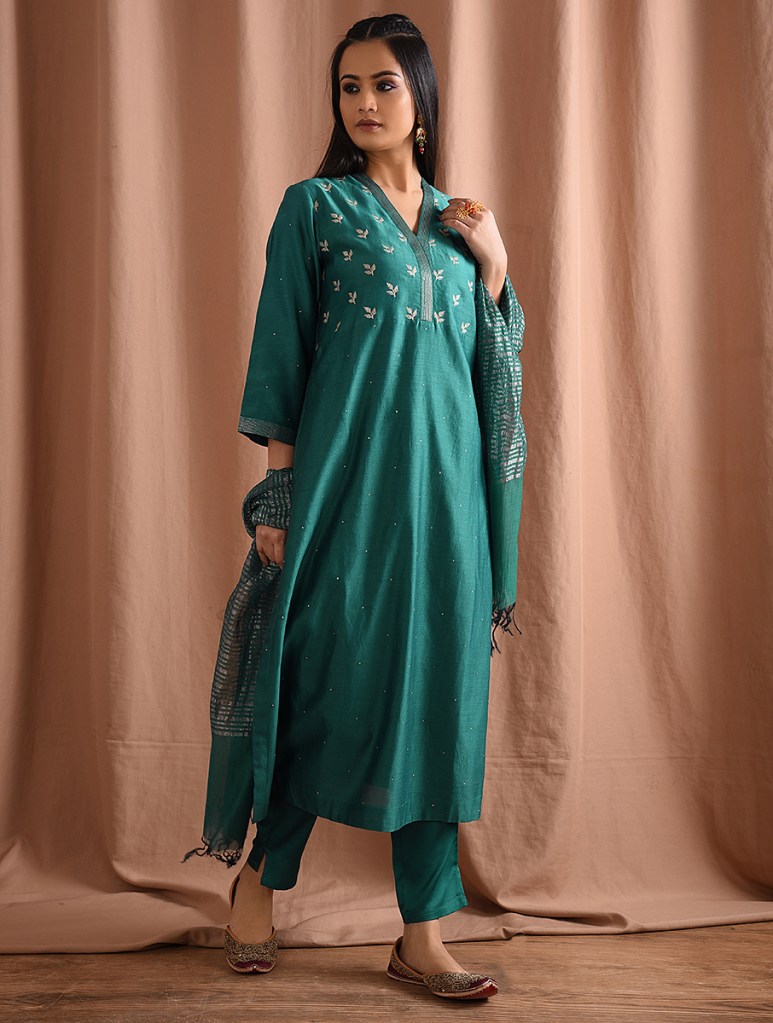Gossamer fabric, rich hues, and a whole lot of gota and zari detailed sparkle; Jaypore’s newest edit of Chanderi separates is an ode to feminine elegance.