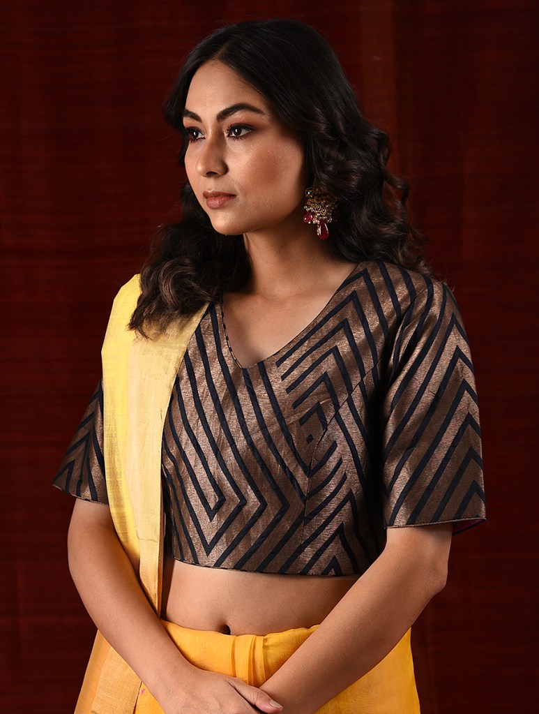 Carved out of regal Tanchoi and adorned with Kadhwa buttis, these attention-grabbing pieces are yours to style as you please.