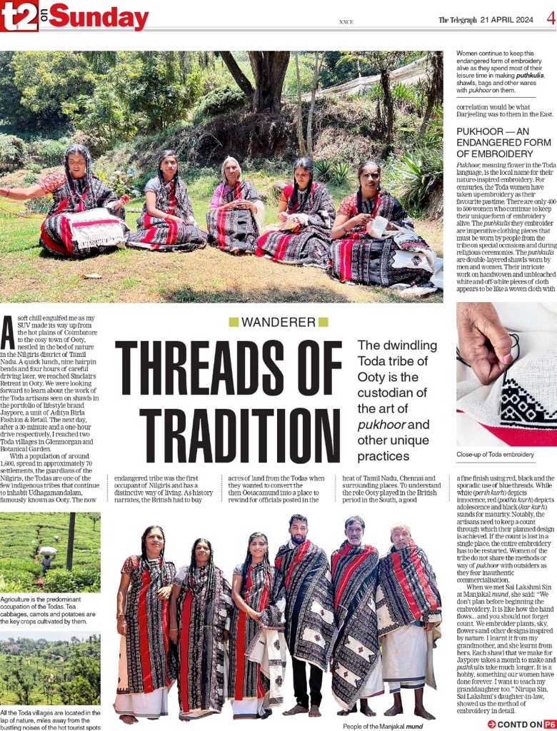 Read more about Toda Tribe & their famous Toda embroidery in Telegraph covered by Jaypore.