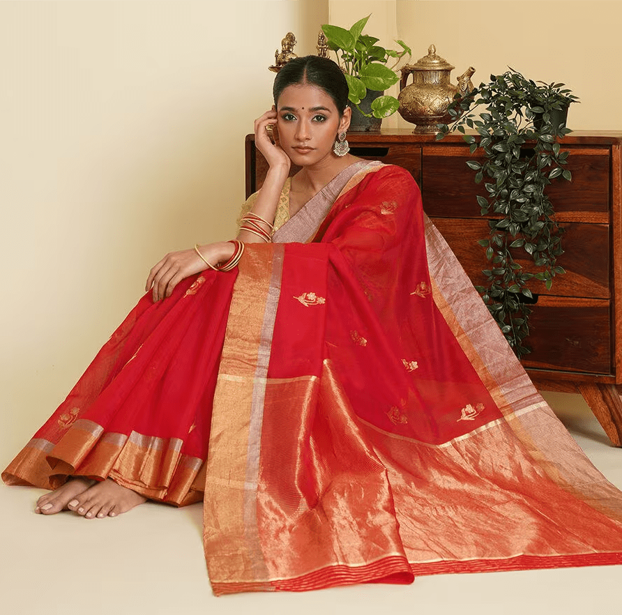 The sheer, lightweight nature of Chanderi silk makes it perfect for day-long celebrations, blending ease & sophistication. Choosing this beautiful craft that not only embody the spirit of the festival but also honors the artisans whose skill & dedication keep these traditions alive.