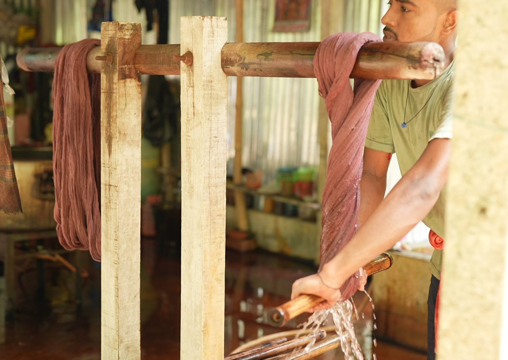 The magic starts with the preparation of yarn! Picture this: skilled artisans carefully spinning cotton & silk yarn fibers into fine threads, ready to be transformed into something extraordinary. The next step? Dyeing! Vibrant colors are infused into the yarn, turning each thread into a vivid story.