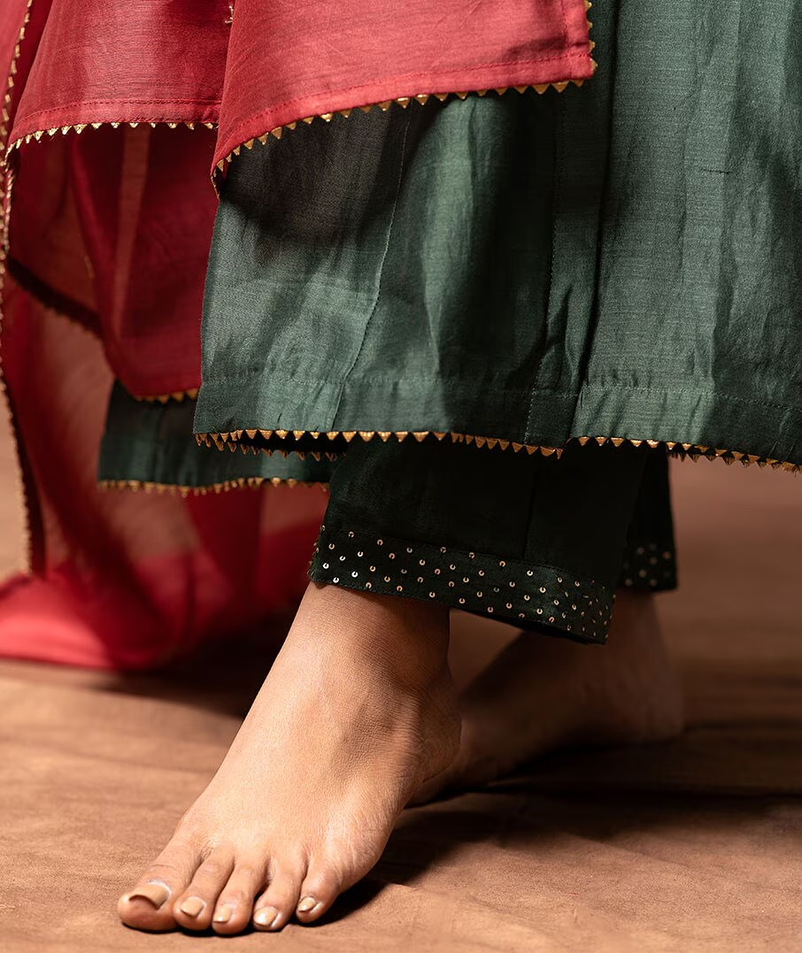 The sheer, lightweight nature of Chanderi silk makes it perfect for day-long celebrations, blending ease & sophistication. Choosing this beautiful craft that not only embody the spirit of the festival but also honors the artisans whose skill & dedication keep these traditions alive.
