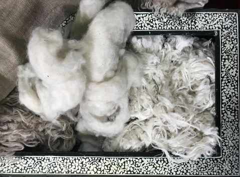 Upon arrival in Kashmir, the raw wool undergoes a meticulous sorting process by skilled women artisans. This is a crucial & respected role that exists only in Kashmir. The fleece is carefully examined to remove impurities & any remaining coarse fibers.