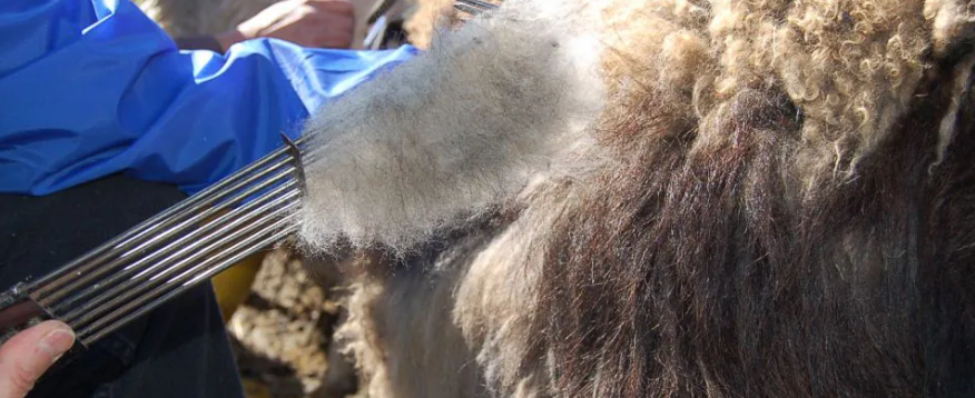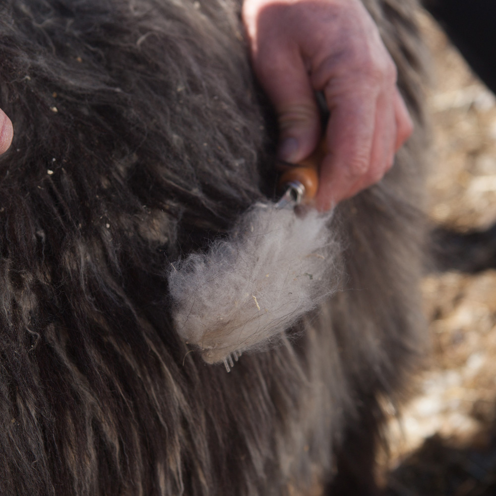 Combing begins with the prime areas—ears, neck & chest—where the fibers are softest, before moving to coarser sections like britches. To maintain purity, each section is stored separately in paper bags marked by body area, capturing the essence of this meticulous tradition.