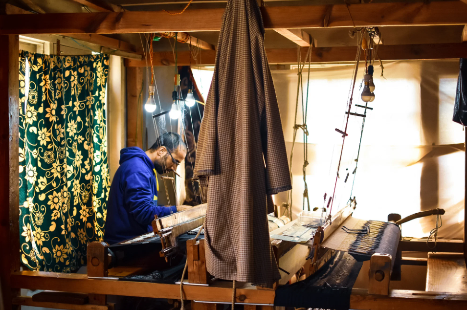 Weaving Pashmina is a task reserved for master craftsmen, often men, who use hand-operated wooden looms to create the fabric.