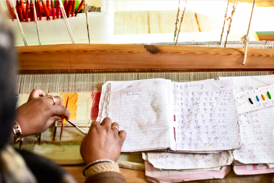 Talim’ is a coded pattern through which the designs are made. The beauty of these codes is that only the weavers can interpret.