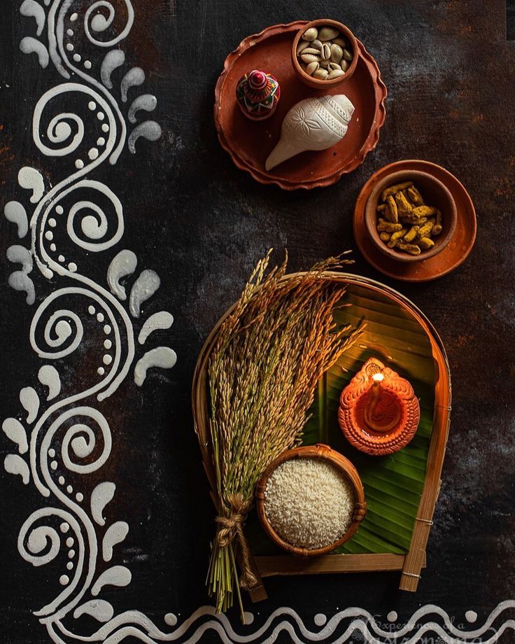 People adorn themselves in traditional outfits, the air fragrant with the scent of fresh flowers, colorful rice flour rangolis (Kolam) greet visitors at the doorstep. As the day unfolds, the old is discarded, burned in a bonfire, symbolizing the shedding of past burdens & the warm embrace of fresh possibilities.