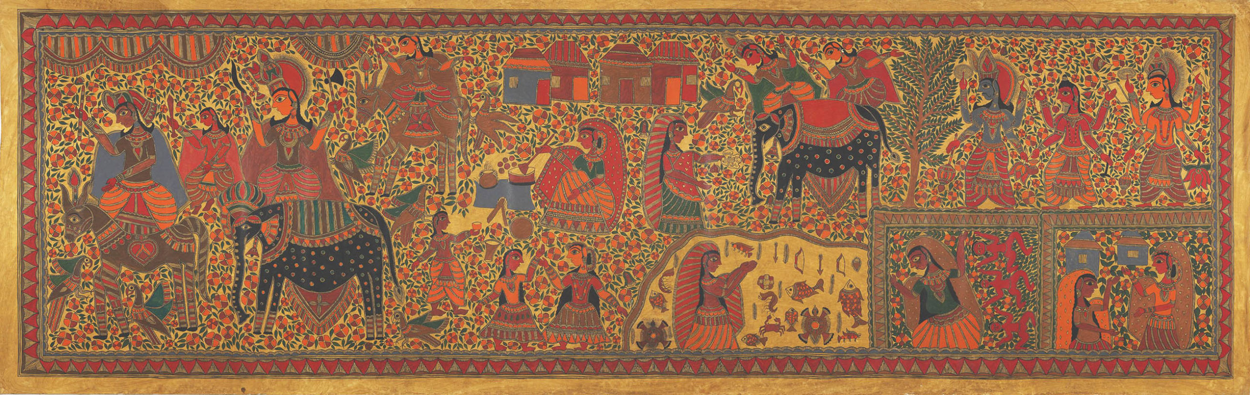 Captivated by the artistry & storytelling imbued in these paintings, Archer saw an opportunity to preserve & promote this indigenous tradition. He encouraged the women of Mithila to transfer their art from walls to paper, transforming the transient beauty of their murals into masterpieces.