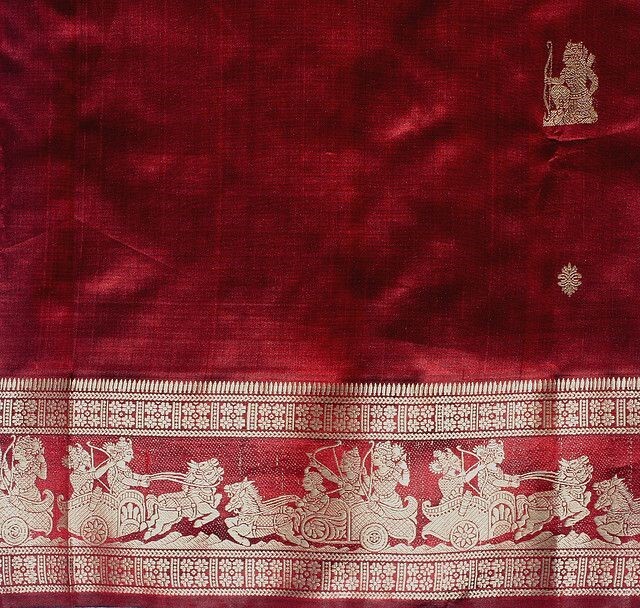 What beckons most to the Baluchari sarees is their storytelling through opulent motifs in silk. These are not just motifs, but moving paintings that depict divine figurines and emotive scenery from mythologies. Originally, scenes from the Mahabharata, Ramayana, and Raas Lila dominated the sarees.
