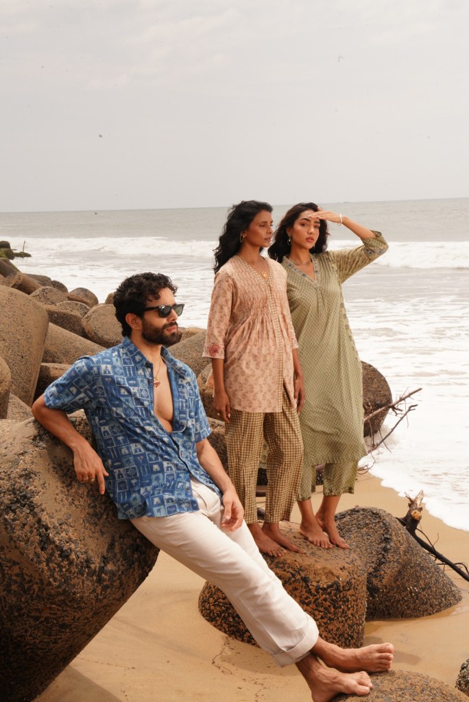 Inspired by the Parava fishermen’s coastal rhythm and quiet resilience, the upcoming collection of the new season reflects a life rooted in faith, nature & craft. Hand-done Kantha stitching lends artful texture and movement to every piece. With bold block prints on soft cotton in striking hues, it’s made for mindful getaways and soulful escapes, a tribute to coastal heritage and everyday grace.