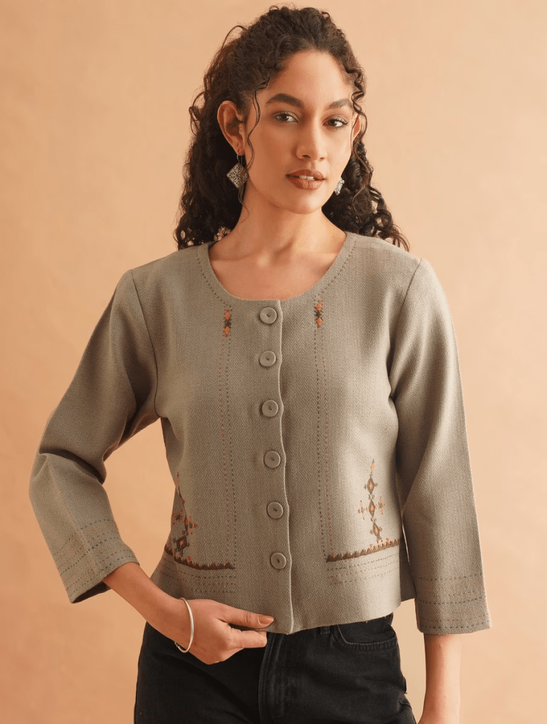 At Jaypore, Soof embroidery is made accessible and stylish for everyday living, transforming traditional craftsmanship into contemporary expressions of art. From vibrant cushion covers and table runners to chic jackets, tunics, and kurta sets, each piece carries the intricate geometric patterns and folk motifs of Kutch. By blending heritage handwork with modern design, Jaypore preserves cultural traditions while adding a colorful, artisanal touch to homes and wardrobes, allowing timeless artistry to be celebrated in daily life.
